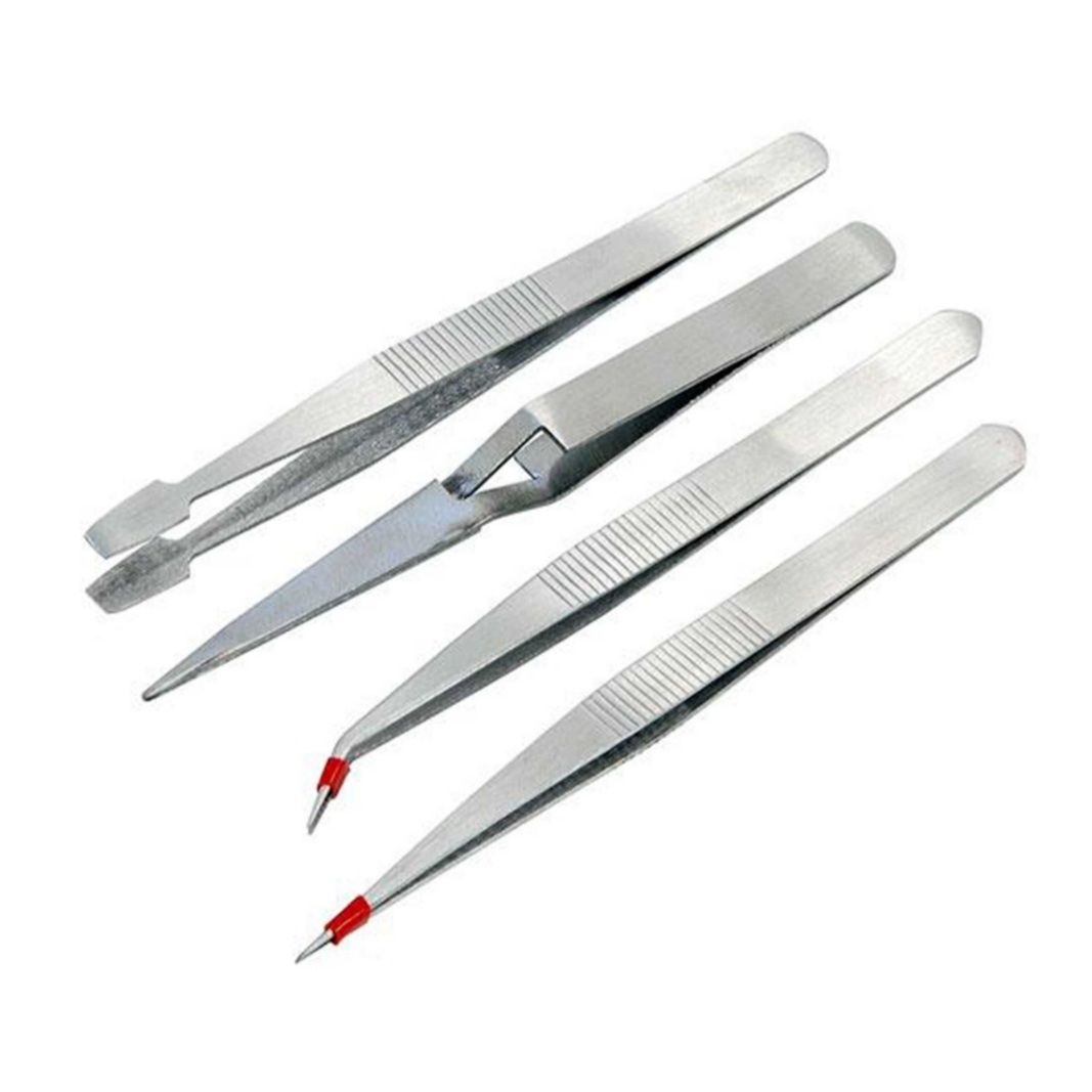 4 Piece Stainless Steel Tweezer Set