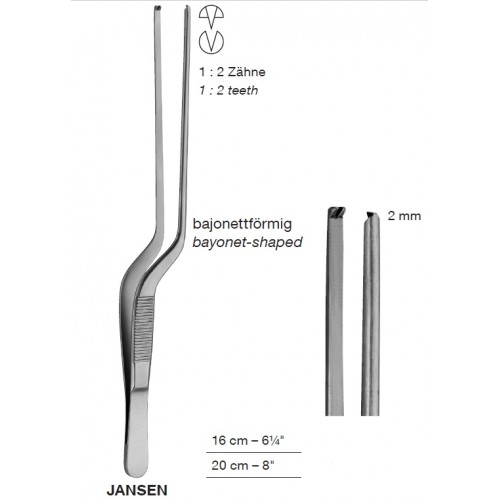 Jansen Bayonet-Shaped Ear Dressing Forceps 2 mm 1X2 Teeth