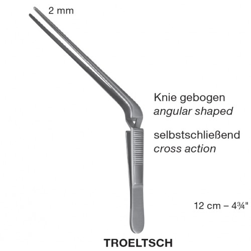 Troeltsch Cross Action Angular Shaped Dressing Forceps 2 mm 12 cm